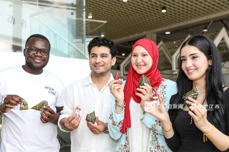 5月30日 常州经开区秋白书苑遥参不雅大馆内,来自7个国度的15名留学生欢聚一堂,包粽子、做喷鼻囊、用中英文吟诵《离骚》,体验中国保守节日端午节。王锐 摄。