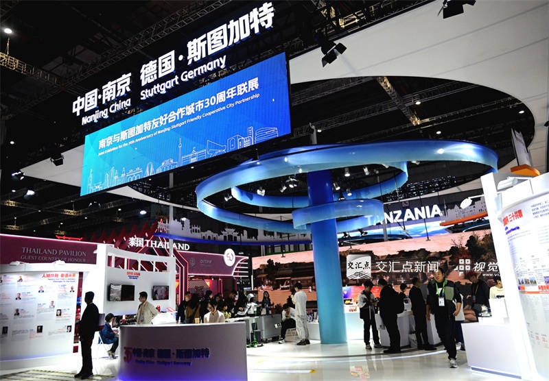 11月9日 上海第八届中国国际进口博览会正在上海举办,“南京—斯图加特敌对合做城市30周年联展”吸引多量不雅众前来不雅展。 管钰楠 摄。