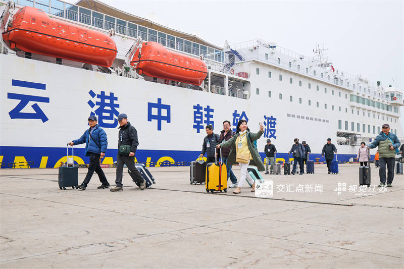 2月2日 连云港新年首艘中韩客货班轮“协调云港”轮成功靠泊连云港港,102名韩国籍搭客从连云港海港客运港口免签入境。图为旅客下船前去入境大厅。王健平易近 摄。